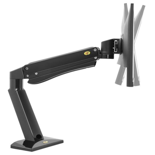Stolní polohovatelný držák na monitor nebo Tv NB NB45B Stolní držák na monitor nebo Tv 27-43", otočný +/-180°, sklopný +/-12°, nastavení výšky 195-635mm, délka dle otočení 0-695mm, pivot, vedení kabeláže, 2 typy stolních úchytů, VESA 75x75 a 100x100, nosnost 15kg Profesionální stolní držák na velké monitory s úhlopříčkami 27" až 43". Držák je plně polohovatelný ve 3D - otáčení do stran, naklápění, výškové polohování, rotace monitoru, vzdálenost od stolního uchycení. Rameno držáku má integrovaný plynový píst, který snadno nastavíte na hmotnost zavěšeného monitoru, poté již můžete monitor libovolně výškově polohovat velmi snadno a rychle bez nářadí, pouze jednou rukou. Držák je špičkové kvality, je vhodný i do provozů, kde je nutné neustálé upravování polohy monitoru. Rameno držáku má integrované krytky pro skryté vedení kabeláže. Uchycení na stolové desky (jakékoliv vodorovné desky) o průměru 10mm až 90mm. Uchycení je možné buď na okraj desky (2 svěráky) nebo kamkoliv do prostoru (nutný 1 otvor o průměru 10-50mm). Barevné provedení černé. Záruka 3 roky. Profesionální stolní držák na monitor nebo Tv NB NB45B Technické údaje: nosnost (nastavitelné zatížení) 3kg až 15kg na monitory a televizory s úhlopříčkou 27" až 43" VESA standardy 75x75 a 100x100 (možnost rozšíření) 3D nastavení polohy otáčení do stran +/- 180° vzdálenost max. 695mm od uchycení výška 195mm až 635mm náklon +/- 12° rotace obrazovky (PIVOT) - otočení do vodorovné nebo svislé polohy nejvyšší kvalita zpracování systém pro vedení kabeláže 2 typy uchycení na stolové (vodorovné) desky - na okraj nebo do prostoru na stolové desky 10mm až 90mm barevné provedení černé záruka 3 roky Stolní držák na monitor NB NB45B Držák monitoru Tv NB45B podporuje VESA standardy: VESA 75x75 VESA 100x100.