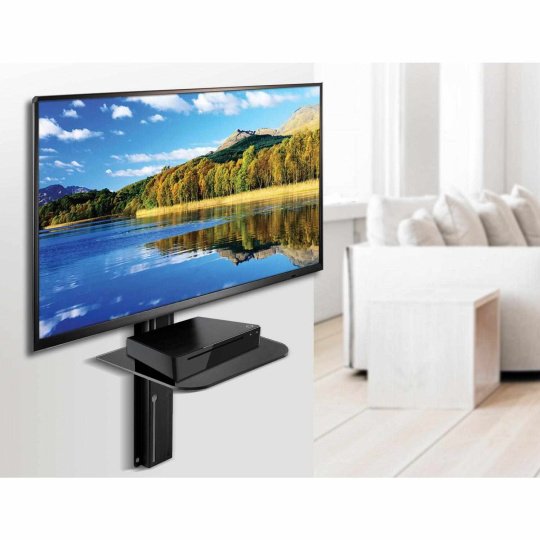 Fiber Mounts SET771 levná sestava držáku Tv a poličky Držák na Tv 23-50" a polička na příslušenství 240x200mm, otáčení Tv až +/- 90°, naklápění +3° / -10°, vzdálenost od zdi 90-442mm, VESA 100*100 až 200*200, instalační materiál, nosnost poličky 6kg, nosnost držáku 30kg Sestava nástěnného držáku na televizi a poličky. Sestava obsahuje polohovatelný držák pro uchycení LCD LED televize 23-50 palců, který umožňuje otáčení televize do stran, její naklonění a nastavení potřebné vzdálenosti od zdi, skleněnou polici na jakékoliv příslušenství a závěsnou lištu. Police můžete výškově polohovat. Celková nosnost sestavy Fiber Mounts SET771 je 30kg. Polička je z tvrzeného skla o rozměrech 24x20cm a nosností 6kg. Veškerou kabeláž je možné ukrýt do závěsné lišty. Levná sestava polohovatelného držáku na Tv 23-42 palců, police na příslušenství a závěsné lišty se systémem vedení a uschování kabeláže - Fiber Mounts SET771 Technické údaje: maximální celkové zatížení 30kg nosnost police 6kg držák podporuje VESA standardy 100x100 až 200x200 univerzální, vhodný na všechny typy a značky televizorů doporučená úhlopříčka Tv 23-50 palců držák umožňuje otáčení Tv do stran +/- 90° držák umožňuje naklonění obrazovky + 3° až - 10° držák umožňuje nastavení vzdálenosti Tv od zdi v rozmezí 90 až 442mm polička z tvrzeného skla 6mm rozměry police 240x200mm výškové polohování police materiál ocel a tvrzené sklo délka závěsné lišty 700mm možnost uschovat veškerou kabeláž do závěsné lišty balení obsahuje sadu instalačního materiálu barevné provedení černé záruka 2 roky Držák podporuje VESA standardy: VESA 100x100 VESA 200x100 a 100x200 VESA 200x200 držák nepodporuje VESA 75x75 Na držák je možné zavěsit všechny typy a značky televizorů, jejichž hmotnost není vyšší jak 30kg a které podporují VESA standard 100x100, 200x100 nebo 200x200..