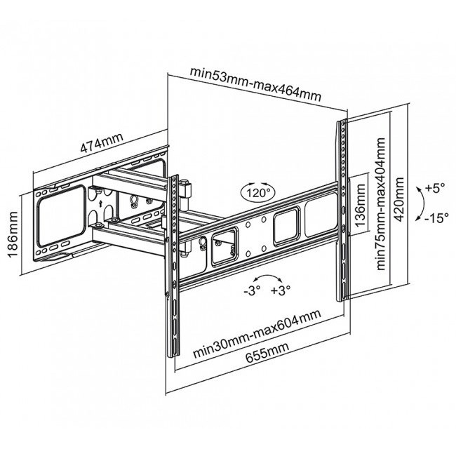 Dvouramenný výsuvný držák Tv Fiber Mounts M7C1 Kvalitní dvojramenný držák na televize 37-70", otočný +/-60°, sklopný +5°/-15°, vzdálenost Tv 53-464mm, korekce roviny +/-3°, instalační materiál, VESA 75x75 až 600x400, nosnost 40kg Kvalitní dvojramenný televizní držák, na který bezpečně zavěsíte televizory s úhlopříčkami 37" až 70". Držák umožňuje otáčení do stran, náklon nahoru i dole, změnu vzdálenosti od zdi a korekci roviny obrazovky. Dodáváme včetně montážního materiálu. Barevné provedení černé. Dvouramenný výsuvný držák na televize Fiber Mounts M7C1Fiber Mounts M7C1 je kvalitní dvouramenný držák pro spolehlivé a bezpečné zavěšení televize na zeď Technické údaje: maximální zatížení 40kg podporuje VESA standard 75x75 až 600x400 doporučujeme na televizory s úhlopříčkou 37" až 70" otáčení do stran +60° až -60° náklon +5° až -15° nastavitelná vzdálenost od zdi minimální vzdálenost 53mm maximální vzdálenost 464mm korekce roviny +3° až -3° bezpečné zavěšení obrazovky, zajištění proti vysazení kvalitní konstrukce snadná montáž a nastavitelnost barva černá záruka 3 roky Výsouvací, otočný i sklopný držák pro zavěšení LCD, LED, OLED a QLED televizí na stěnu - Fiber Mounts M7C1 Držák Tv Fiber Mounts M7C1 podporuje VESA standardy: VESA 75x75 VESA 100x100 VESA 200x100 VESA 200x200 VESA 300x200 VESA 300x300 VESA 400x200 VESA 400x300 VESA 400x400 VESA 600x400 Na držák Fiber Mounts M7C1 je možné zavěsit veškeré typy a značky televizorů, které podporují některý z výše uvedených VESA standardů a jejich hmotnost je maximálně 40kg. Úhlopříčka televizoru není podstatná..