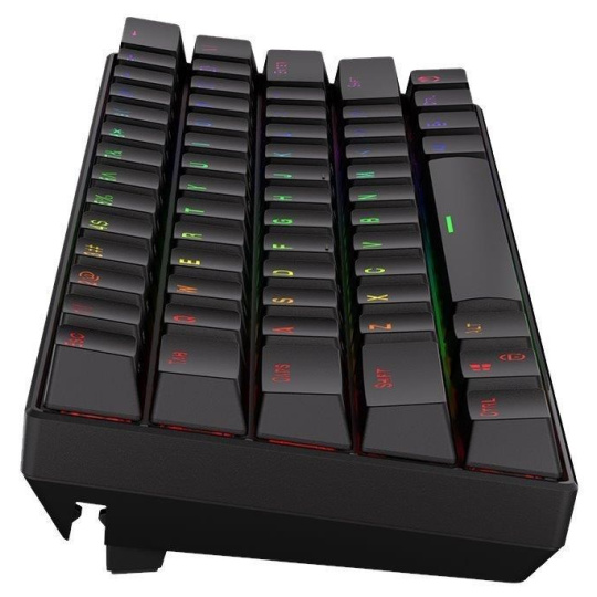 Bezdrátová mechanická herní klávesnice v kompaktním provedení je vybavena spínači Kailh Brown s perfektní odezvou a životností až 70 milionů stisků. Klávesy jsou RGB podsvícené a nabízí možnost vlastního nastavení. Klávesy jsou navíc také plně programovatelné, díky tomu lze klávesnici individualizovat přesně podle potřeb hráče a hrané hry. Samozřejmě nechybí ani funkce Anti-Ghosting a N-Key rollover. Připojení k počítači lze realizovat jak bezdrátově skrze Bluetooth či miniaturní USB přijímač a technologii 2,4 GHz, tak i drátově pomocí USB kabelu, který slouží zároveň pro nabíjení.