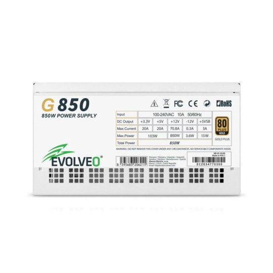 EVOLVEO G850 zdroj 850W, 80+ GOLD, ATX 3.1, aPFC, 140 mm ventilátor, záruka 3 roky, bílý