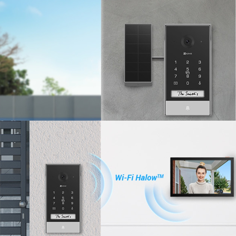 EP7 je 100% bateriový domovní telefon s možností solárního nabíjení a je připraven pro velké domy a vily. Umožňuje vám ovládat jak bránu pro automobily, tak přední dveře, a používá technologii Wi-Fi HaLow™ pro silné spojení s vnitřním monitorem navzdory dlouhému dosahu přenosu a silným zdím, zatímco chytře optimalizuje využití baterie.