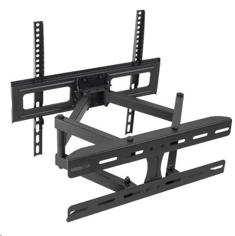 Levný ale kvalitní otočný, sklopný a délkově nastavitelný držák na televize 26-55" Držák robustní a velmi pevné konstrukce, který Vás mile překvapí svou nízkou cenou, která ale nebyla na úkor kvality. Držák má nosnost 30kg a podporuje VESA standardy 100x100 až 400x400. Je ideální pro bezpečné a spolehlivé zavěšení televizorů s úhlopříčkou 26-55" na zeď. Se zavěšenou televizí můžete otáčet na obě strany, naklápět ji nahoru nebo dole a měnit její vzdálenost od zdi - přisouvat, odsunovat, což je ideální v případě zapojování kabeláže nebo při utírání prachu. Kdykoliv máte přístup k zadní straně televize nebo k jejím bokům, což u sklopných nebo fixních držáků nelze a televizi musíte vždy sundat ze stěny. Držák má ocelovou konstrukci, která je robustní a bezpečná, barevné provedení je černé. V balení kromě samotného držáku naleznete i instalační sadu. Levný držák na televizi LCD LED plazmovou 3D nebo prohnutou, doporučená úhlopříčka 26-55 palců. Bezpečné zavěšení televize na stěnu, můžete s ní otáčet na obě strany, naklápět ji nahoru nebo dole a odsunovat nebo přisunovat ke zdi. Fiber Mounts DELTA760 / drzakyastolky.cz Technické údaje: nosnost 30kg podporuje VESA standardy 100x100 až 400x400 ideální pro zavěšení televizí a monitorů s úhlopříčkou 26-55" otáčení na obě strany +/- 75° náklon obrazovky nahoru nebo dole +/- 15° nastavení vzdálenosti od zdi 70-460mm pevná ocelová konstrukce spolehlivé a bezpečné zavěšení televizoru na zeď barva černá záruka 2 roky Držák Fiber Mounts DELTA760 podporuje VESA standardy: VESA 100x100 VESA 200x100 a 100x200 VESA 200x200 VESA 300x100 a 100x300 VESA 300x200 a 200x300 VESA 300x300 VESA 400x200 VESA 400x300 VESA 400x400 Nástěnný levný držák Fiber Mounts DELTA760 je ideální pro zavěšení všech typů a velikostí televizorů nebo monitorů, které mají hmotnost do 30kg a které podporují některý z výše uvedených VESA standardů..