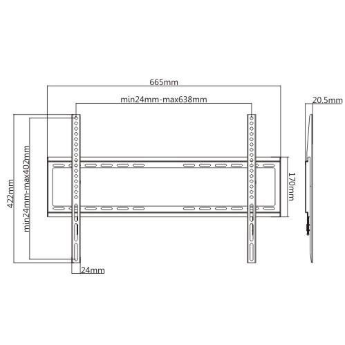 Nástěnný držák na televize i monitory Fiber FM02 Poctivý ocelový držák na Tv 37-70", vzdálenost Tv od zdi 20mm, podpora VESA 100x100 až 600x400, nosnost 35kg Kvalitní ocelový držák pro zavěšení televizorů nebo monitorů s úhlopříčkou 37" až 70" na zeď. Vzdálenost Tv od zdi jen 20,5mm, podpora VESA standardů 100x100 až 600x400, nosnost 35kg. Držák je dodáván včetně instalačního materiálu. Instalační nástěnná deska s rozměry 650x170mm zajistí vynikající rozložení hmotnosti na velké ploše. Záruka 10 let. Fixní poctivý držák na televize i monitory 37-70" Fiber FM02 Technické údaje: nosnost 35kg podpora VESA standardů 100x100 až 600x400 na televize a monitory s úhlopříčkou 37" až 70" vzdálenost od zdi 20,5mm snadná montáž ocelová konstrukce instalační materiál (hmoždinky, vruty, sada šroubů) barva černá záruka 10 let Zajištění televizoru na držáku pomocí šroubů integrovaných do ramen držáku Fiber FM02 Držák Tv FM02 podporuje VESA standardy: VESA 100x100 VESA 200x100 a 100x200 VESA 200x200 VESA 300x200 a 200x300 VESA 300x300 VESA 400x200 a 200x400 VESA 400x300 a 300x400 VESA 400x400 VESA 600x400 Na držáky Fiber FM02 je možné zavěsit všechny typy a značky Tv i monitorů, které: mají hmotnost maximálně 35kg podporují kterýkoliv z výše uvedených VESA standardů.