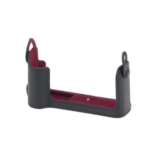Genuine premium leather bottom case. The camera can stay in the case while the battery is replaced..