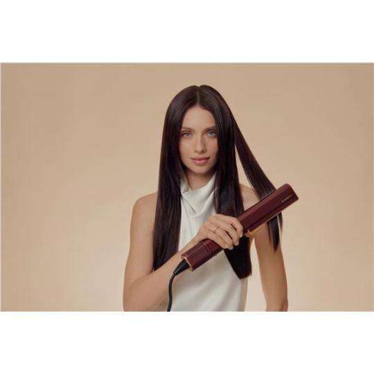 Místo tradičních horkých destiček pracuje s přesně řízeným proudem teplého i studeného vzduchu. Díky tomu můžete vlasy narovnávat ihned po umytí – rychle, pohodlně a bez rizika poškození.