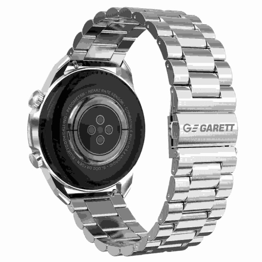 - Sada obsahuje: chytré hodinky Garett s ocelovým řemínkem, náhradní silikonový řemínek, nabíjecí kabel USB (bez zástrčky do zásuvky), příručku QSG