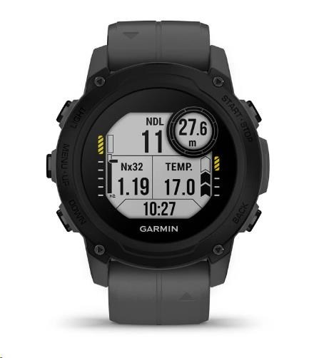 - Výdrž až 25 hod. (ponor), až 21 dní (smartwatch) a až 26 hod. (GPS záznam).