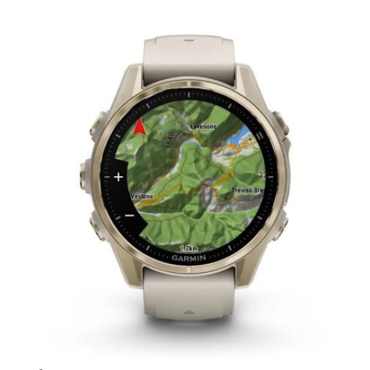 Garmin fenix® 8 – 43 mm, AMOLED, Sapphire, Soft Gold / Fog grey se silikonovým řemínkem, EU