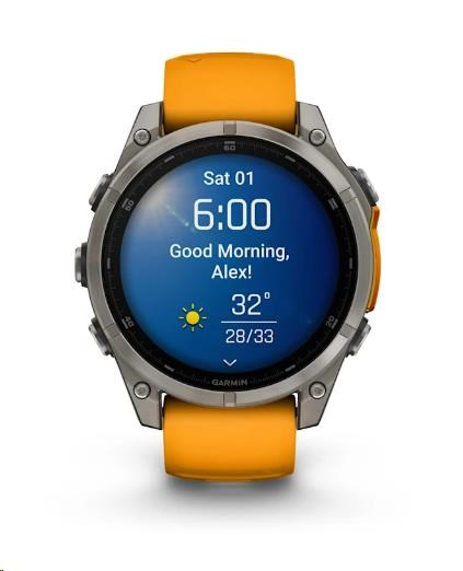 Garmin fenix® 8 – 47 mm, AMOLED, Sapphire, Titanium s Orange/Graphite silikonovým řemínkem, EU