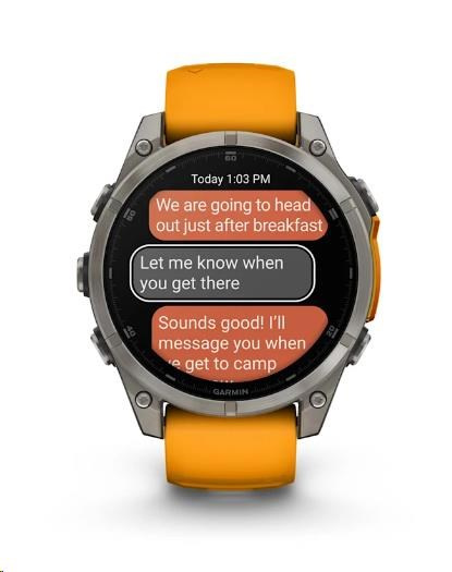 Na hodinkách můžete přijímat e-maily, textové zprávy a upozornění na spárovaném telefonu Android nebo Apple. Hodinky rovněž podporují platby Garmin Pay, abyste se při svých dobrodružstvích mohli vydat kamkoliv a nestarat se o to, že jste něco zapomněli doma. S hodinkami Garmin fénix 8 máte totiž vždy všechno důležité po ruce - na svém zápěstí.