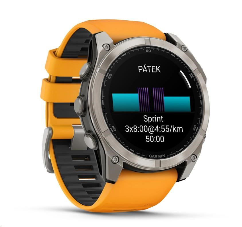 Garmin - fenix® 8 – 51 mm, AMOLED Sapphire, Titanium s Orange/Graphite silikonovým řemínkem, EU