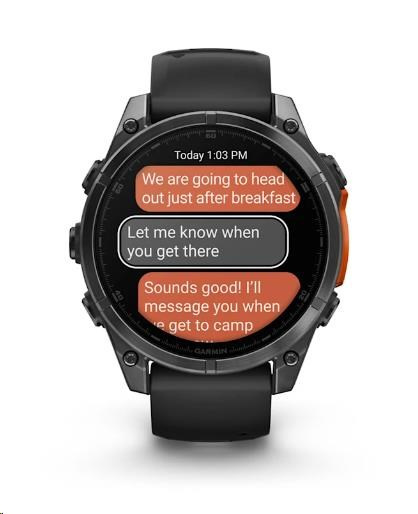 Na hodinkách můžete přijímat e-maily, textové zprávy a upozornění na spárovaném telefonu Android nebo Apple. Hodinky rovněž podporují platby Garmin Pay, abyste se při svých dobrodružstvích mohli vydat kamkoliv a nestarat se o to, že jste něco zapomněli doma. S hodinkami Garmin fénix 8 máte totiž vždy všechno důležité po ruce - na svém zápěstí.