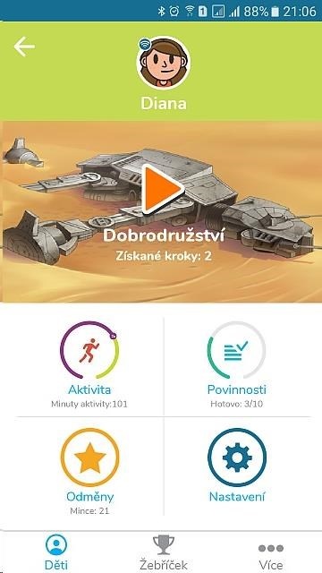Fitness náramek pro děti s motivy kreslených postaviček od Disney a komiksových akčních hrdinů. * motivuje děti k pohybu, plnění úkolů a soutěžení * odměny za plnění domácích povinností * barevný displej, skvěle viditelný a čitelný i na přímém slunci * odolné a pohodlné řemínky ve dvou velikostech * aplikace pro mobilní telefony zdarma * počítá nachozené kroky za den a minuty strávené intenzivním pohybem * upozorňuje na neaktivitu a vybízí k pohybu (např. při dlouhodobém sezení) * upozornění (alarmy) na naplánovaný čas plnění úkolů (zvukem, obrázkem a textem) * bez nutnosti nabíjení, baterie s dobou provozu více jak 1 rok * vodotěsné i pro plavání.