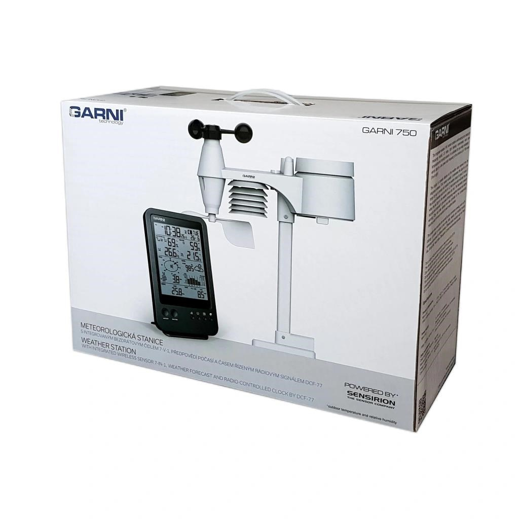 Meteorologická stanice s předpovědí počasí, měřením vnitřní a vnější teploty, relativní vlhkosti, barometrického tlaku, rychlosti a směru větru, dešťových srážek, UV indexu a intenzity slunečního záření ? LCD displej o rozměrech 90 x 110 mm ? možnost krátkodobého osvětlení displeje oranžovou barvou na 5 s ? velikost číslic na displeji - čas 15 mm, datum, zkratka názvu dne 6,5 mm, vnější a vnitřní teplota a relativní vlhkost 12,5 mm, barometrický tlak 8 mm, rychlost a náraz větru 11 mm, zkratka směru větru 5 mm, srážky, UV index, intenzita slunečního záření, pocitová teplota, Wind Chill, teplotní index, rosný bod 10 mm ? čas a datum řízený rádiovým signálem DCF-77 s možností manuálního nastavení ? zkratka názvu dne ? 12, nebo 24 hodinový formát zobrazení času ? ikona příjmu signálu DCF-77 ? časová zóna +/- 23 hodin ? budík s funkcí opakovaného buzení (Snooze) ? buzení zvukovým signálem (4 sekundy 1 pípnutí za sekundu, 4 sekundy 2 pípnutí za sekundu, 4 sekundy 3 pípnutí za sekundu a poté stálé 4 pípnutí za sekundu) ? funkce budíku Pre-alarm - budík se aktivuje o 30 minut dříve, pokud bude venkovní teplota nižší než -3 C ? fáze Měsíce ? měření vnitřní teploty a relativní vlhkosti s ikonou tepelné pohody ? měření vnější teploty, relativní vlhkosti, rychlosti a směru větru, srážek, UV indexu a intenzity slunečního záření integrovaným čidlem 7-v-1 ? integrované čidlo 7-v-1 používá pro měření teploty a relativní vlhkosti švýcarská čidla SENSIRION ? možnost použití dalších 3 bezdrátových čidel pro měření teploty a relativní vlhkosti GARNI 055H a bazénového čidla GARNI 057P pro měření teploty vody (volitelné příslušenství) ? zobrazení teploty ve C, nebo F ? šipky vývoje vnitřní a venkovní teploty a relativní vlhkosti ? možnost automatického střídání zobrazení venkovní teploty a relativní vlhkosti naměřené integrovaným čidlem 7-v-1 a volitelnými přihlášenými bezdrátovými čidly po 4 sekundách ? měření průměrné rychlosti větru za uplynulých 12 s, nárazů větru a směru větru aktuální a za uplynulých 5 minut, 16 rozlišení směru ? zobrazení rychlosti větru v Beaufortově stupnici ? textový popis úrovně síly větru (LIGHT – lehká, MODERATE – mírná, STRONG – silná, STORM – bouře) ? zobrazení rychlosti větru a nárazu větru v m/s, km/h, knots (uzlech), nebo mph ? zobrazení směru větru zkratkou (16 zkratek), nebo ve stupních (360 ) ? měření dešťových srážek - aktuální (za uplynulou hodinu), hodinový úhrn, denní úhrn, týdenní úhrn, měsíční úhrn a celkový úhrn ? zobrazení úhrnu dešťových srážek v mm, nebo in (palcích), aktuální hodnota v mm/h, in/h ? 6 animovaných ikon předpovědi počasí (slunečno, polojasno, oblačno, déšť, bouřky, sněžení) ? měření barometrického tlaku, zobrazení absolutního, nebo relativního barometrického tlaku ? zobrazení hodnoty barometrického tlaku v hPa, inHg, nebo mmHg ? sloupcový graf vývoje barometrického tlaku za uplynulých 24 hodin ? zobrazení hodnoty UV indexu, intenzity slunečního záření, venkovní pocitové teploty, Wind Chill, teplotního indexu a rosného bodu ? zobrazení intenzity slunečního záření v lux, fc, nebo W/m2 ? možnost kalibrace UV indexu a intenzity slunečního záření ? paměť na naměřené hodnoty vnitřní a venkovní teploty a vlhkosti, hodnoty barometrického tlaku, hodnoty Wind Chill, rychlost větru včetně času a data měření za posledních 24 hodin po hodině ? zobrazení maximálních a minimálních hodnot vnitřní a vnější teploty a relativní vlhkosti, pocitové teploty, Wind Chill, teplotního indexu, rosného bodu, barometrického tlaku, maximální průměrné rychlosti a nárazu větru a maximálních intenzity srážek, maximálního UV indexu, maximální hodnoty intenzity slunečního záření s časem a datem záznamu ? alarm horních a dolních mezí vnitřní a vnější teploty a relativní vlhkosti včetně přídavných čidel ? alarm horní meze hodinového úhrnu srážek ? alarm horní meze rychlosti větru ? indikace dosažení horní, nebo dolní meze zvukovým signálem a blikající ikonou ? indikace slabých baterií hlavní jednotky , integrovaného bezdrátového čidla 7-v-1 a dalších přídavných bezdrátových čidel ? indikace síly signálu integrovaného bezdrátového čidla a přídavných čidel ? barva černá ? rozměry hlavní jednotky bez stojánku 118 x 192,5 x 21 mm ? napájení 3 ks AA baterií 1,5 V Integrované bezdrátové čidlo 7-v-1 model GARNI 6INT ? voděodolné integrované bezdrátové čidlo 7-v-1 (teplota, relativní vlhkost, rychlost větru, směr větru, dešťové srážky, UV index, intenzita slunečního záření) ? dosah signálu integrovaného bezdrátového čidla až 150 m v otevřeném prostoru ? přenos signálu na frekvenci 868 MHz ? vodováha ? radiační štít ? barva světle šedá, misky rychlosti větru černé ? rozměry 343,5 x 393,5 x 136 mm ? napájení 3 ks AA baterií 1,5 V Obsah balení: 1 x hlavní jednotka 1 x integrované bezdrátové čidlo 7-v-1 1 x stojánek hlavní jednotky 1 x montážní základna integrovaného bezdrátového čidla 1 x stojánek integrovaného bezdrátového čidla 1 x montážní objímka integrovaného bezdrátového čidla 4 x delší šroub, 4 x matice, 4 x plochá podložka, 2 x kratší šroub, 2 x menší matice, 2 x gumové podložky český, slovenský, anglický, německý, nizozemský, polský a maďarský návod.