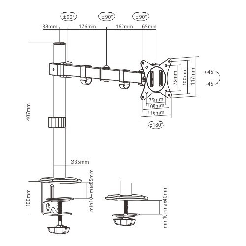 • Rameno umožňuje otáčet, vysouvat, zatahovat nebo naklánět váš displej a umožňuje otočení displeje z režimu na šířku do režimu na výšku atd.