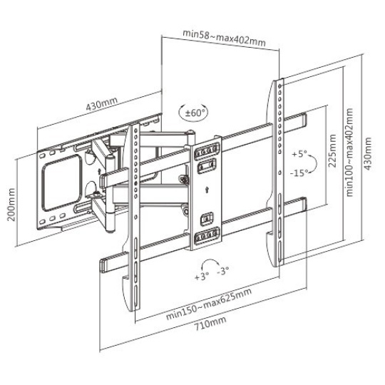 - Vzdálenost od stěny: 58 - 402 mm