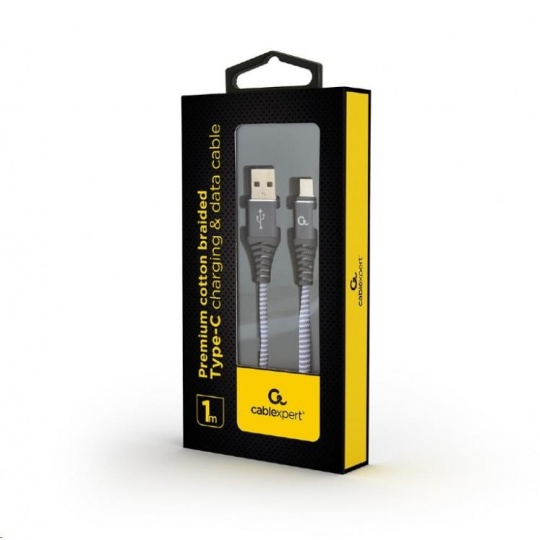 GEMBIRD Kabel USB 2.0 AM na Type-C kabel (AM/CM), 1m, opletený, šedo-bílý, blister, PREMIUM QUALITY