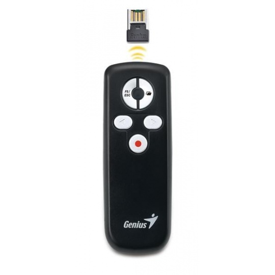 Zcela nová pomůcka Media Pointer 100 od firmy Genius je nejlepší nástroj pro použití při prezentacích. Pokročilá 2,4 GHz bezdrátová technologie poskytuje pracovní rozsah až 10 metrů bez interference. Je to užitečný nástroj pro schůzky, projevy či školení na cestách.