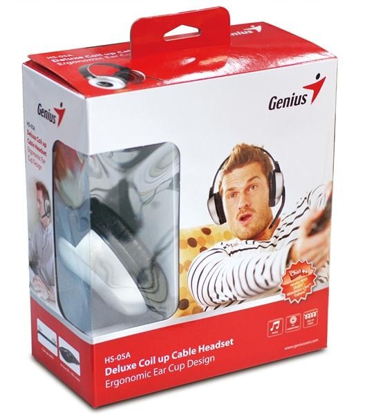 Užijte si jasný zvuk se sluchátky HS-05A od firmy Genius. Tato luxusní sluchátka s klapkami plné velikosti předchází nepohodlí uší po dlouhém používání, upravitelná spojovací čelenka a kožené klapky jsou flexibilní k lepšímu padnutí kolem vaší hlavy. Gumový mikrofon je možno ohnout do ideální polohy k přenosu lepší kvalitu hlasu, navíjecí kabel předchází zamotávání drátů. Hlasitost se snadno změní s použitím ovládání hlasitosti na drátě sluchátek.