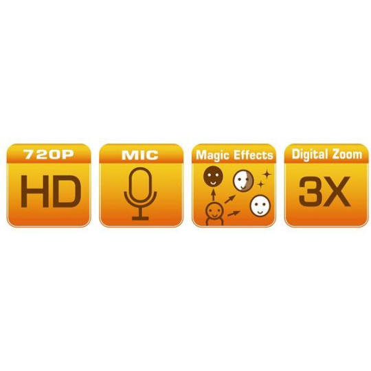 Maximální rozlišení videa (px):HD (1280 x 720); Vlastnosti:Vestavěný mikrofon, Manuální ostření; Barva:Černá; Podporované OS:Windows 7, Windows 8, Windows 10, Windows XP, Windows Vista, MAC OS; Rozlišení fotografií:1,0 Mpix; Hloubka:22 mm; Hmotnost:50 g; Šířka:60 mm; Výška:20 mm; Rozlišení Web kamery:1.0 Mpix.... více
