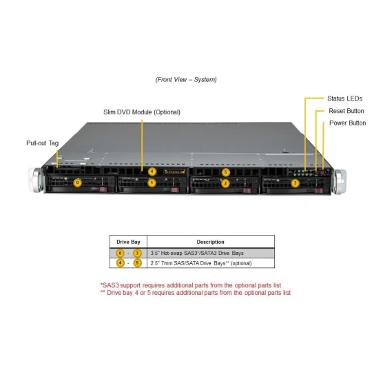 | Úložiště | Až 4x 3.5" NVMe/SATA/SAS hot-swap |