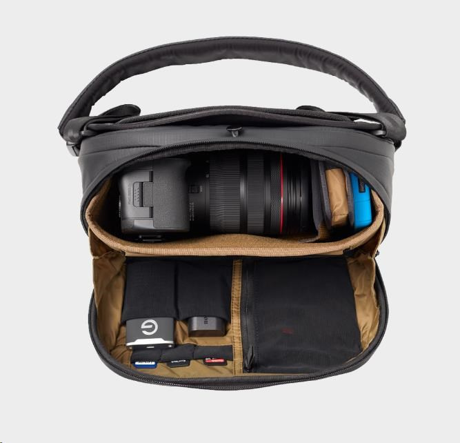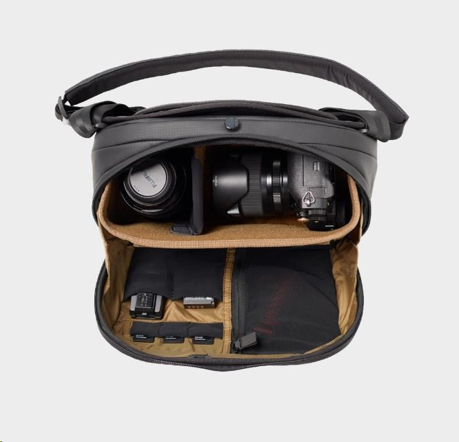 Díky stejným pevným a vodě odolným materiálům jako naše brašna McKinnon 25L, také Sling 8L má dostatek prostoru, aby se do něj pohodlně vešla bezzrcadlovka nebo malá DSLR s extra objektivem. Otvor je vyztužen pevnou, drátěnou konstrukcí pro rychlý přístup a dokonalou viditelnost. Zaujme rychloupínací systém, díky kterému bude přístup k vašemu vybavení hračkou. Na vnitřní straně dvířek je elastická síťovaná kapsa na zip a menší kapsy, vyhrazené na paměťové karty a baterie do fotoaparátu.