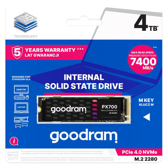 GOODRAM SSD PX700 4TB, PCIe Gen4x4, M.2 2280, (R:7400/W:6500MB/s)