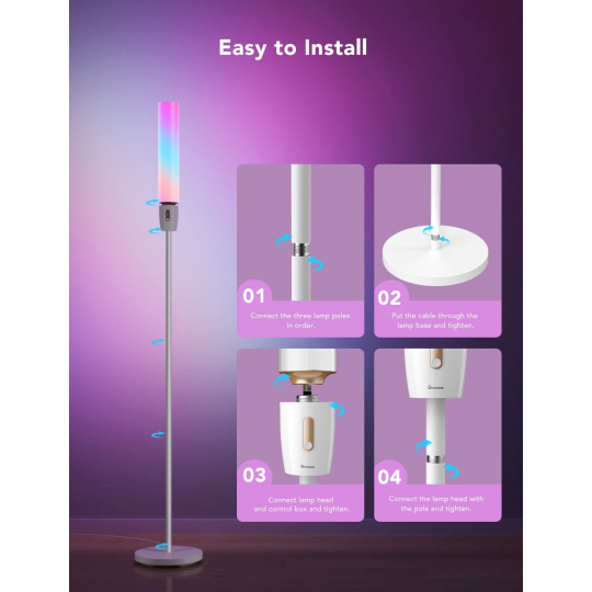 Govee Floor Lamp nabízí miliony barev a 64 přednastavených scénových režimů v aplikaci Govee Home. Prozkoumejte DIY režim a vytvořte si paletu přímo pro vás a váš interiér. Díky aplikaci můžete scény automatizovat a nastavit i časový rozvrh.