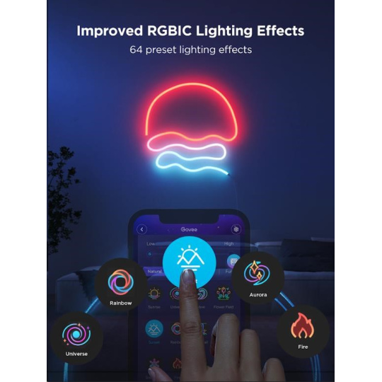 Govee přináší 2. generaci svých neonových pásků. Připravte se na řadu zásadních zlepšení. Vaše gamingové, pracovní nebo relaxační prostředí dostane novou dávku energie s Govee Neon 2. Tyto designové pásky, jsou nyní měkčí, takže tvarování je snadnější. Hotové tvary lze s pomocí přiloženého materiálu umístit na libovolný povrch a s pomocí aplikace a fotoaparátu si tvar do aplikace přenést. Na vytvořený vzor můžete namapovat 16,4 mil. barev a aplikovat množství efektů. 5m pásek se skládá ze 420 diod, což dává hustotu 84 LED/m. Příkon pásku je 48 W při plném výkonu a životnost je 50.000 hodin. Díky technologii RGBIC lze pásku přiřadit až 57 barev najednou v intenzitě 1-100 %. Pro zákazníky, kteří upřednostní přednastavené režimy pásek nabízí 64 světelných scén a 12 způsobů vizualizace hudby. Vybere si každý. Neon 2 se ovládají aplikací a je možné využít i asistenty, Google, Alexa a Siri. Zcela nově pásky podporují protokol Matter, takže integrace do většiny Smart Home prostředí je otázka několika vteřin. Instalace pásků se provádí pomocí přiložených klipů, vybavených silnou, oboustrannou 3M páskou, bez vrtání. K instalaci je nutný pevný povrch, při upevnění na omítku nelze pevnost spojení garantovat.