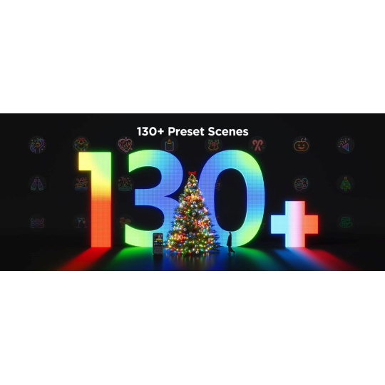 Govee Vánoční světelný řetěz nabízí více než 130 přednastavených světelných scén, které jsou perfektní pro vánoční sezónu i další festivaly během roku. Tyto scénické režimy zahrnují pestrou škálu efektů, od tradičních a útulných atmosfér po živé a energické barevné kombinace, které dokáží oživit jakoukoli oslavu. Ať už slavíte Vánoce, Nový rok, Halloween nebo jiné speciální příležitosti, vždy najdete tu pravou scénu, která dokonale ladí s vaší náladou a tématem události. S těmito bohatými možnostmi přizpůsobení se váš prostor stává centrem zábavy a radosti pro rodinu a přátele.