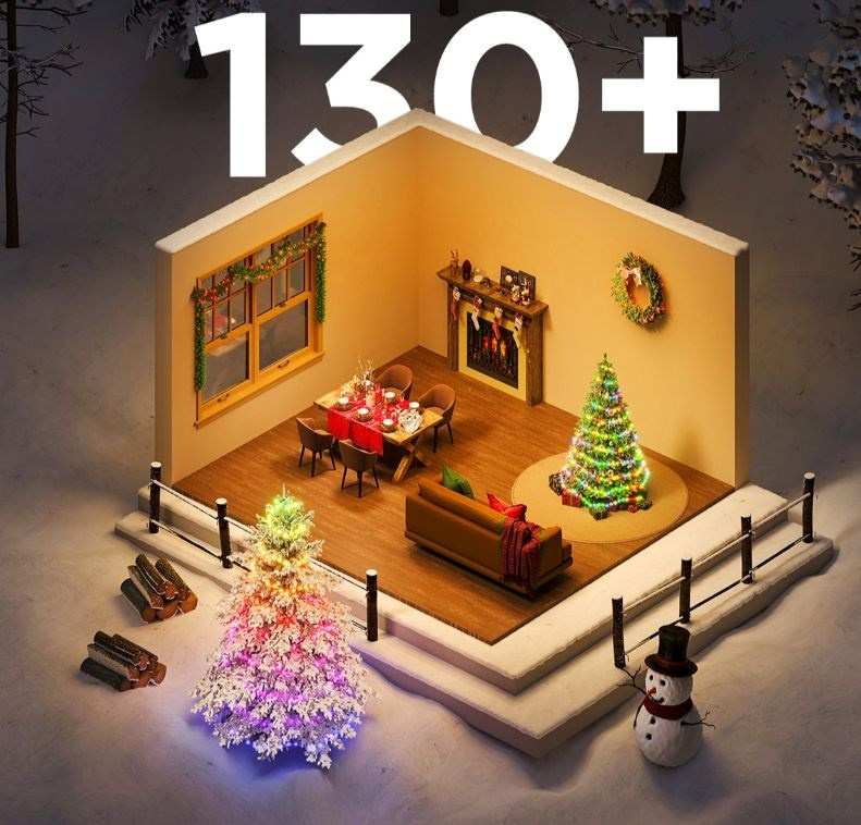 Govee Vánoční světelný řetěz nabízí více než 130 přednastavených světelných scén, které jsou perfektní pro vánoční sezónu i další festivaly během roku. Tyto scénické režimy zahrnují pestrou škálu efektů, od tradičních a útulných atmosfér po živé a energické barevné kombinace, které dokáží oživit jakoukoli oslavu. Ať už slavíte Vánoce, Nový rok, Halloween nebo jiné speciální příležitosti, vždy najdete tu pravou scénu, která dokonale ladí s vaší náladou a tématem události. S těmito bohatými možnostmi přizpůsobení se váš prostor stává centrem zábavy a radosti pro rodinu a přátele.