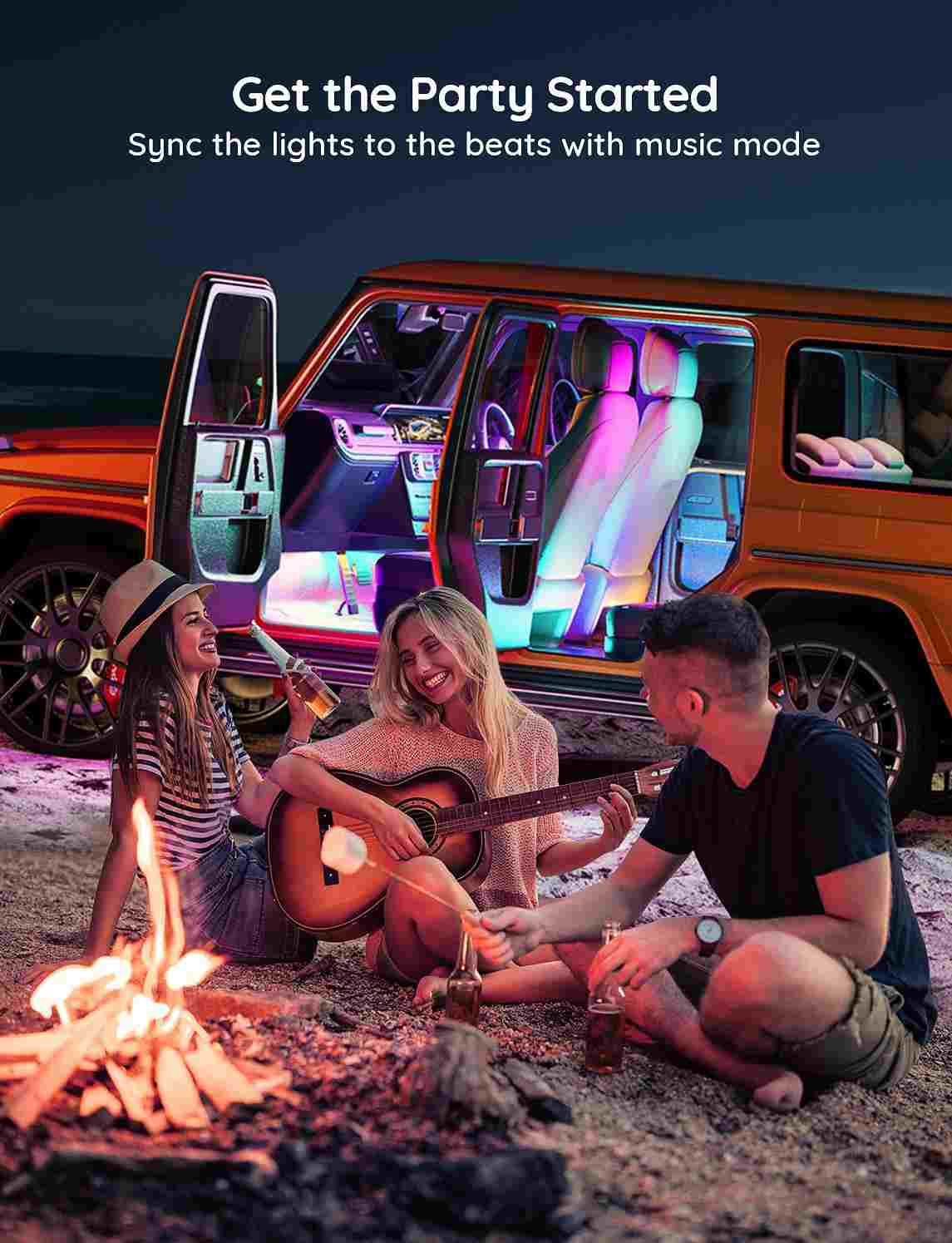 Úsporné interiérové chytré LED pásky Govee Smart RGBIC do auta s životností až 50.000 hodin vylepší interiér vašeho automobilu a poskytnou zážitek, který se naskytuje u luxusních vozů. Můžete je použít prakticky všude, kde je zapalovaní. Zobrazuje až 16 milionů barev, jejichž intenzitu lze nastavit od 1-100%. Díky technologii RGBIC si můžete rozdělit pásek na samostatné segmenty, pro které si můžete pak volit rozdílné barvy. Vyberte si ze 30 režimů osvětlení a při poslouchaní oblíbené hudby se budou světla synchronizovat. Nebo si prostě nastavte svoje vlastní barevné kombinace v režimu DIY. Příkazy můžete zadat přes aplikaci Govee Home na chytrém telefonu nebo tabletu nebo přímo na Control boxu. Instalace je jednoduchá a je rozdělená na přední a zadní část automobilu.