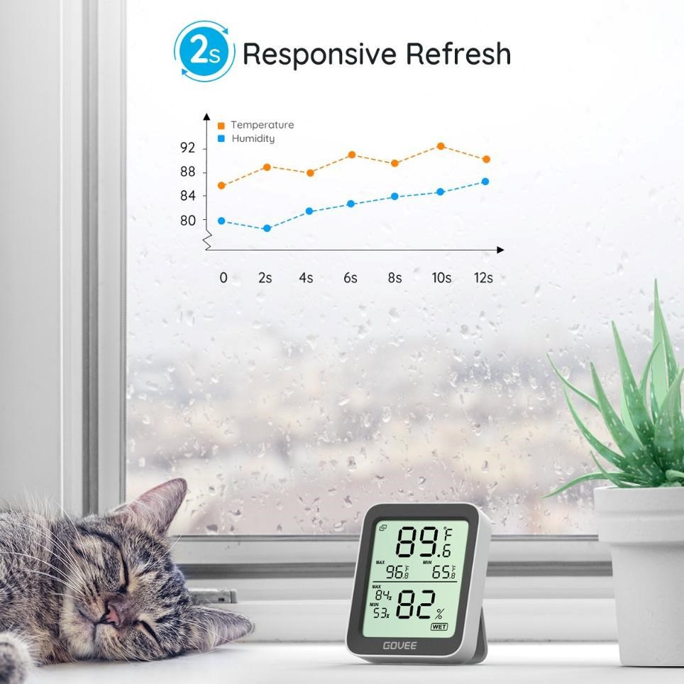 Udržujte své vnitřní prostředí pohodlné a zdravé. Chytrý monitor teploty a vlhkosti od Govee. Tento kompaktní, ale výkonný monitor klimatu zobrazuje aktuální teplotu a vlhkost na přehledném LCD displeji a díky Bluetooth připojení k telefonu máte data vždy na dosah ruky. Díky vysoce přesným senzorům (±0,3 °C pro teplotu a ±3 % RH pro vlhkost) můžete snadno sledovat změny v každé místnosti, kanceláři nebo skleníku.