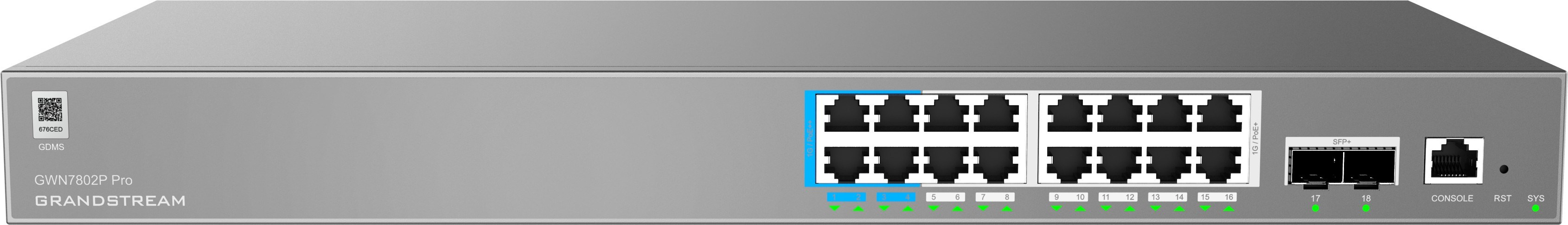 Grandstream GWN7802P Pro Layer 2++ Managed Network switch, 16x Gb RJ45 PoE