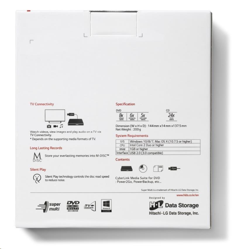 Typ mechaniky:Externí, externí USB 2.0; Druh optické mechaniky:DVD±R/±RW/CD-R/CD-RW/RAM; Rozhraní:USB 2.0.... více