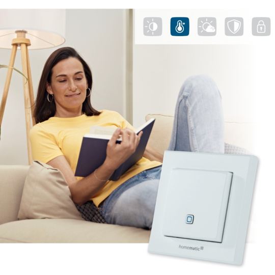 Bezdrátový nástěnný Senzor teploty a vlhkosti (HmIP-STH) určený pro vnitřní instalace představuje inteligentní způsob pro regulaci vytápění a úsporu energií.
