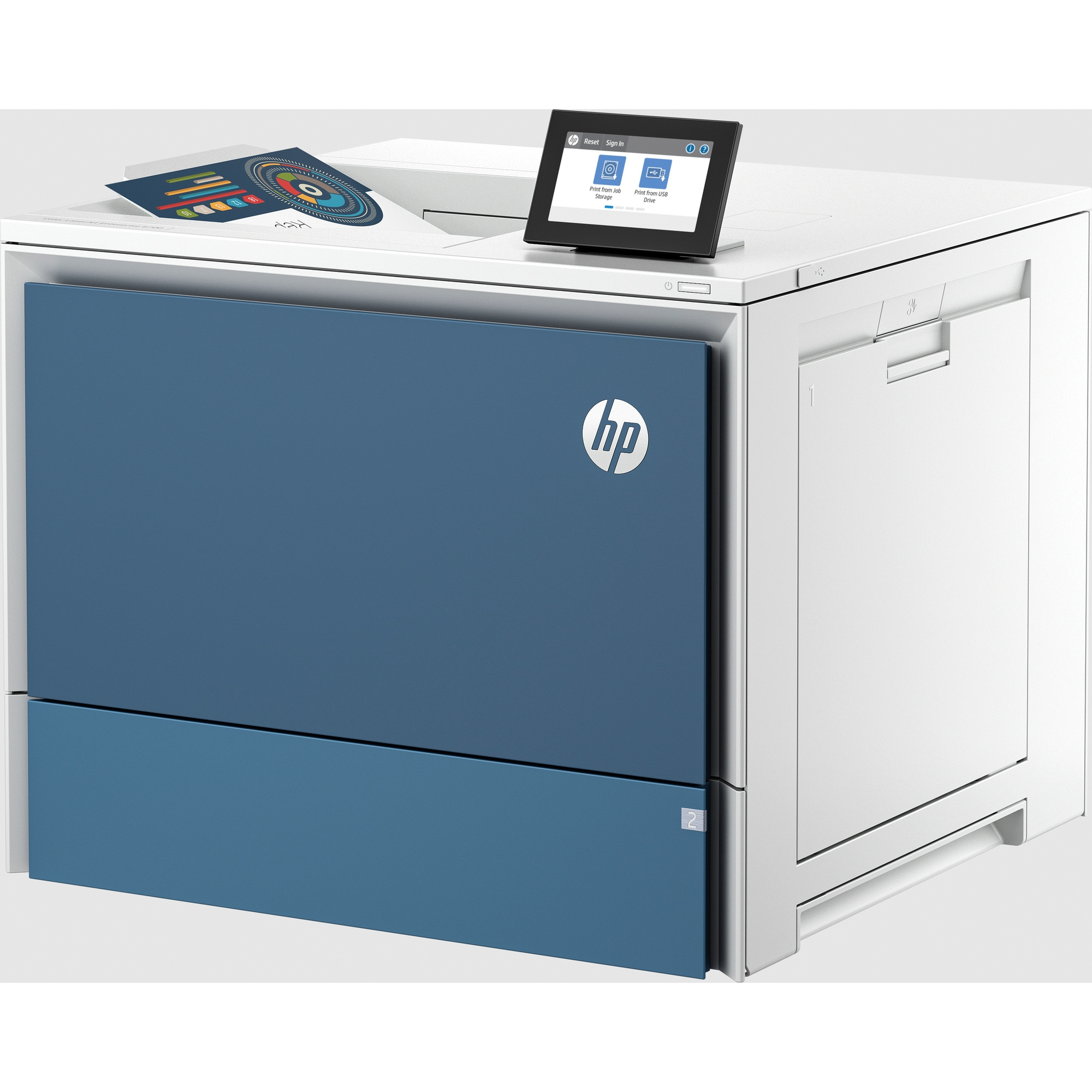 | Hmotnost médií, podporovaná | Zásobník 1: 60 až 220 g/m2 (běžný papír), 120 až 220 g/m2 (lesklý papír); Zásobník 2: 60 až 220 g/m2 (běžný papír), 120 až 220 g/m2 (lesklý papír); Volitelné vstupní zásobníky na 550 listů: 60 až 220 g/m2 (běžný papír), 120 až 220 g/m2 (lesklý papír); Volitelný velkokapacitní vstup na 2 100 listů: 60 až 220 g/m2 (běžný papír) |
