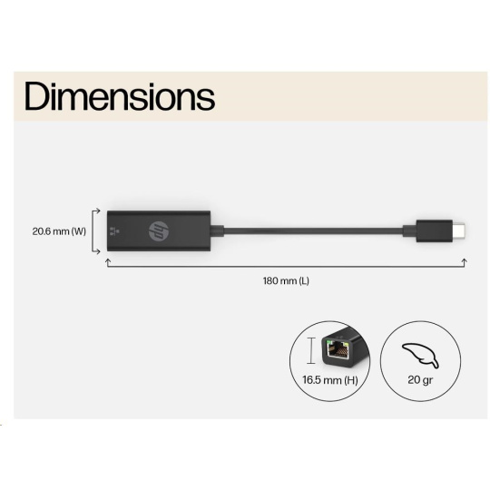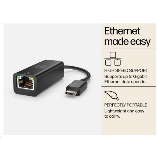 HP USB-C to RJ45 Adapter EURO Připojte své zařízení USB-C™ k síti Ethernet pomocí tohoto snadno přenosného ethernetového adaptéru typu plug-and-play. Kabelové připojení k síti Ethernet je zárukou vysoké rychlosti internetu a umožňuje rychlé a spolehlivé streamování a stahování digitálního obsahu. Podpora vysokých rychlostí - Podporuje rychlosti rozhraní Gigabit Ethernet pro snadné streamování a práci. Výborně přenosný - Lehké provedení si snadno vezmete všude tam, kde máte přístup k síti Ethernet. Spolehlivé pokrytí - Standardní jednoletá omezená záruka HP vám poskytne klid na práci.1.