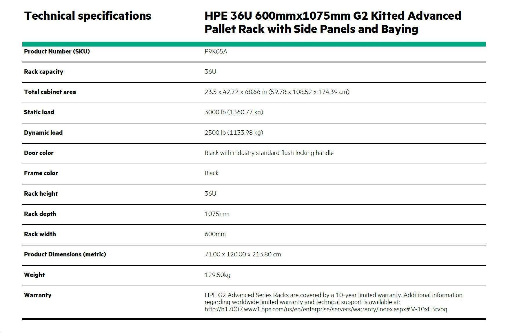 HPE 36U 600mmx1075mm G2 Kitted Advanced Pallet Rack with Side Panels and Baying.