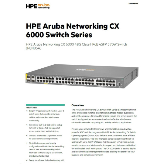 HPE Aruba Networking CX 6000 48G Class4 PoE