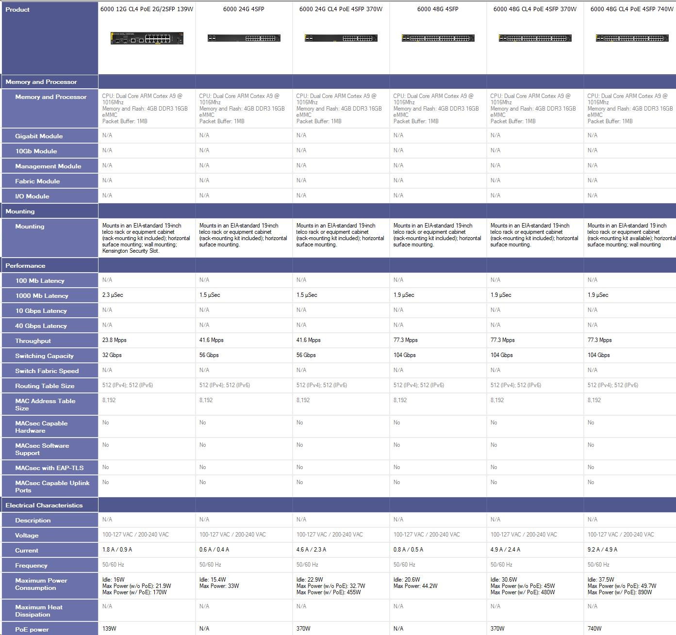 Provedení:Rack mounted 19"; Funkce:QoS (Quality of service), VLAN (virtual local area network), PoE (Power over ethernet), L2; Technologie:Gigabit ethernet + Gigabit optika; PoE budget (W):370; Počet SFP portů:4; Propustnost (Mp/s):41.6; Přepínací kapacita (Gb/s):56; PoE budget (W):370; Přenosová rychlost LAN (Mb/s):570; Maximální počet portů:48.... více