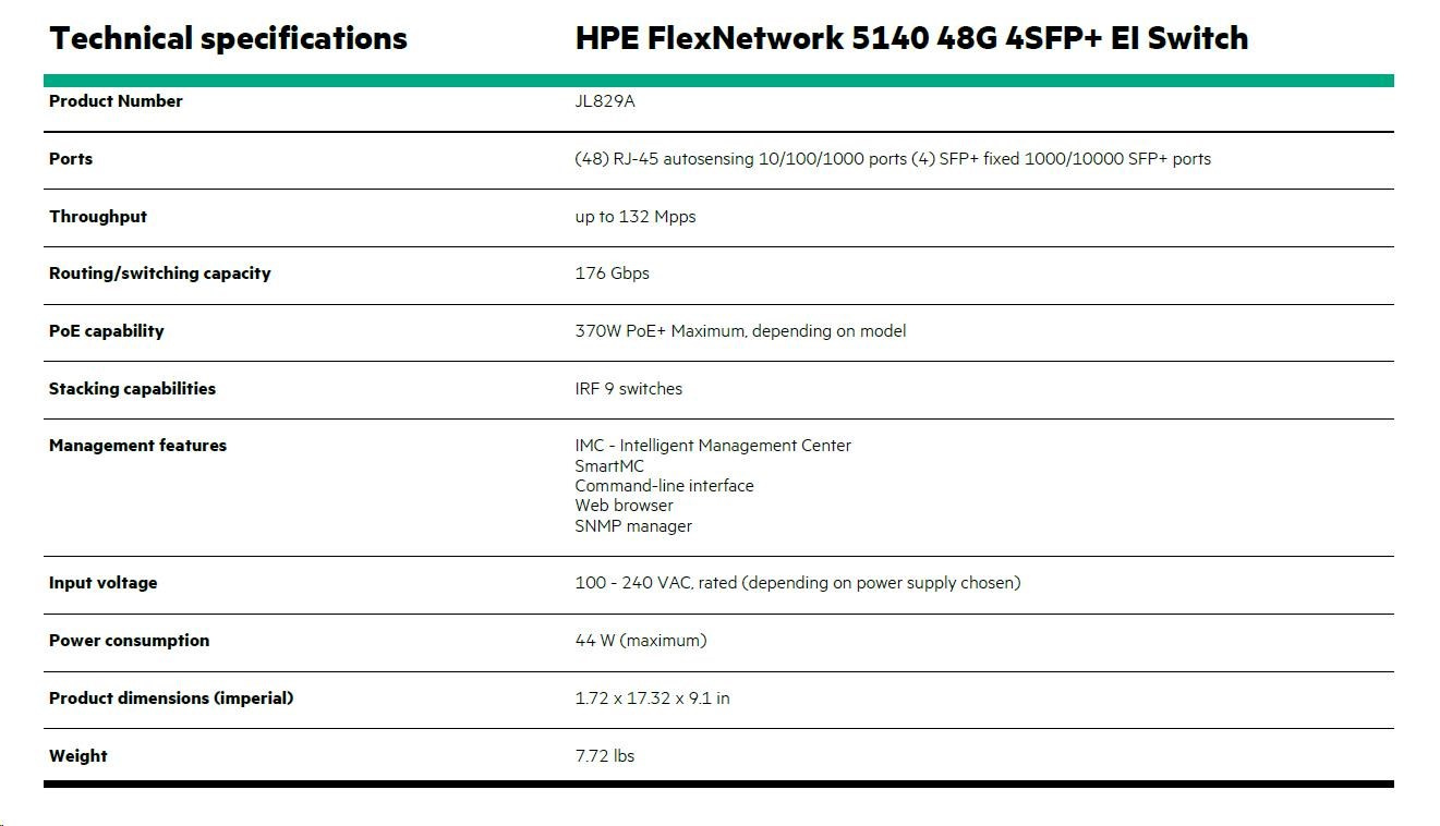 | HPE Networking Comware Switch 48G 4SFP+ EI 5140 | JL829A | |