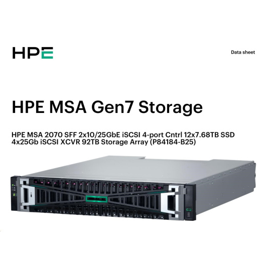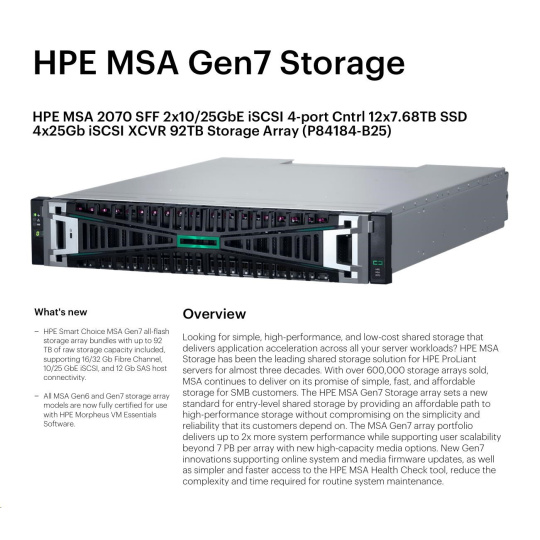 HPE MSA 2070 SFF 2x10/25GbE iSCSI 4-port Controller 12x7.68TB SSD 4x25Gb iSCSI XCVR 92TB Storage Array Smart Choice.