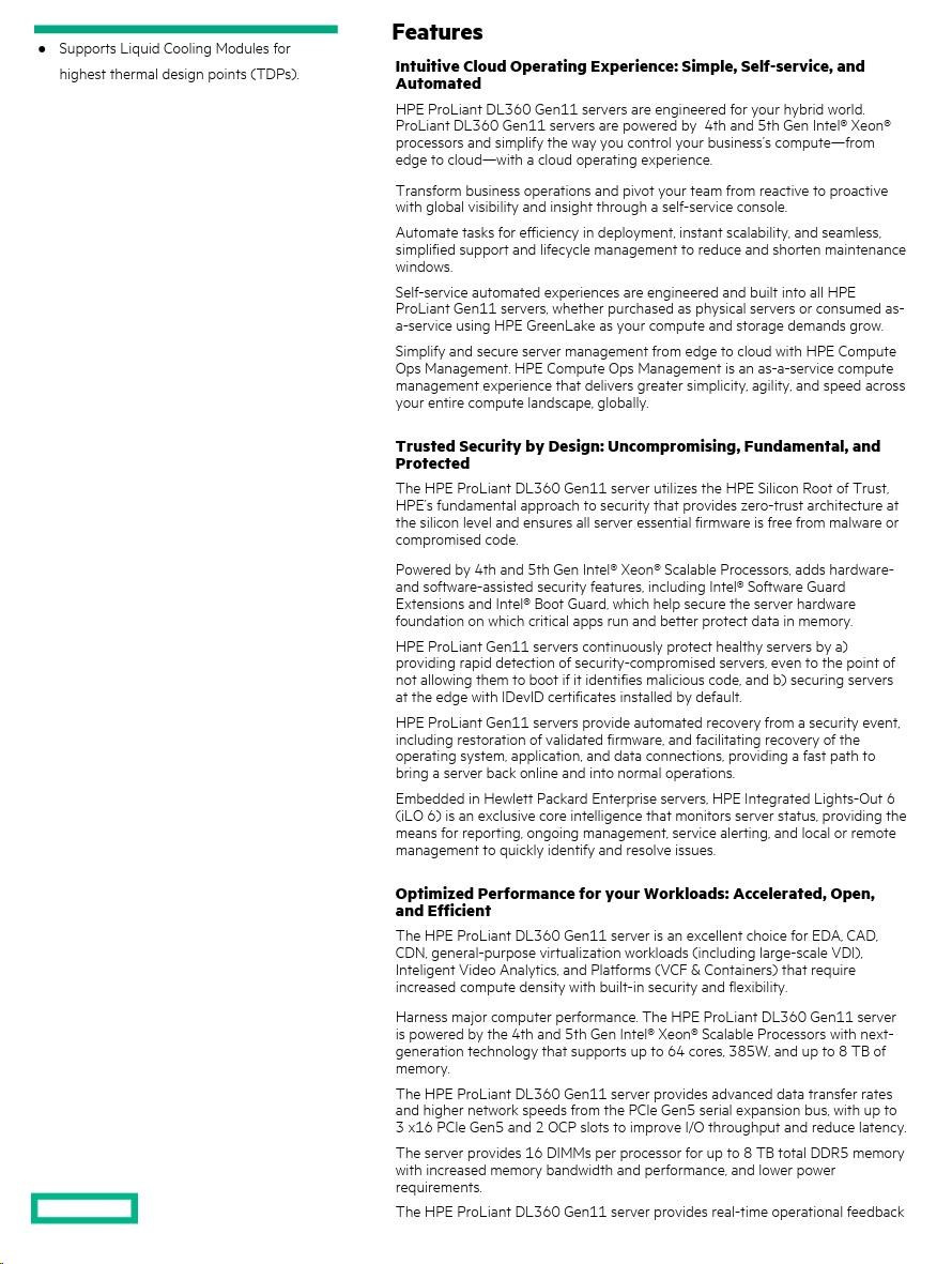 | Infrastructure Management | HPE iLO Standard with Intelligent Provisioning (embedded), HPE OneView Standard (download required) |