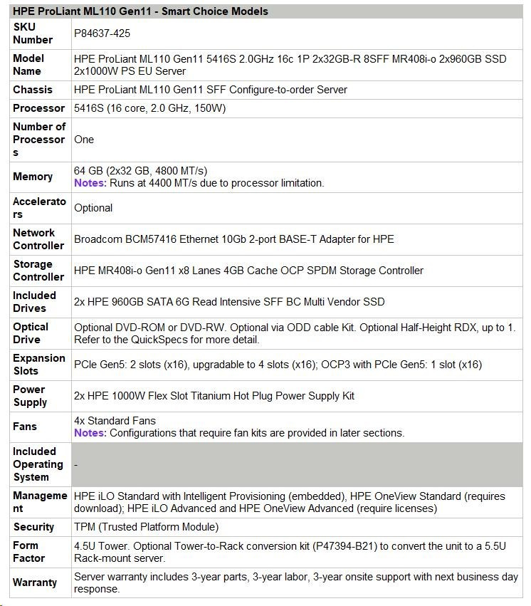 HPE ProLiant ML110 Gen11 - Smart Choice Models