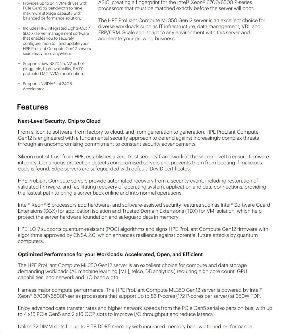 HPE PL ML350 Gen12 6515P (2.4/16C) 1x64G (P69728) 2x480G MR408i-o 8SFF 2x1000W 1GbE NBD333 Smart Choice.