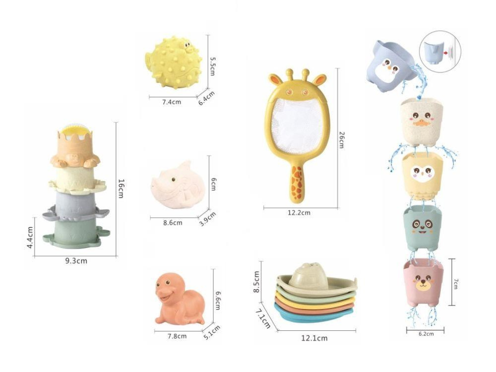 Sada roztomilých hraček do vody 5v1, se zvířátky ze ZOO, promění každou koupel v zábavnou hru. Lodičky, zvířátka, kelímky a síťka se postarají o to, že koupání ve vaničce, vaně nebo v bazénku nebude nuda. K nabírání vody, přelévání a polévání poslouží stohovací kelímky nebo kelímky se zvířátky, na vlnách se pohoupou barevné loďky a zvířátka a na rybáře si děti zahrají se síťkou žirafou..