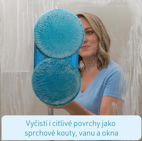 - Čistí také citlivé povrchy, jako jsou sprchové stěny, vany a okna
