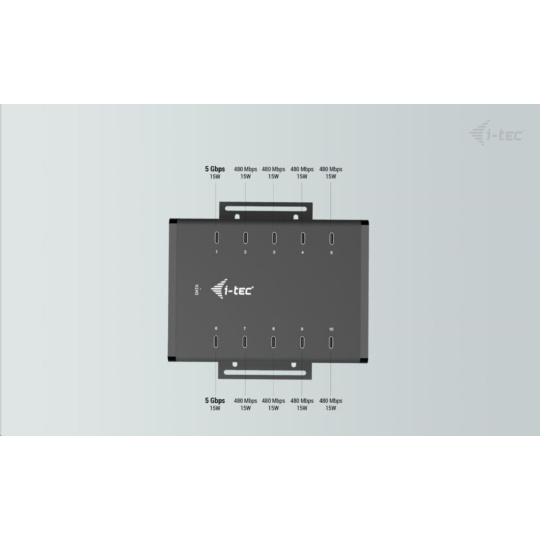 • 10x USB-C port, všechny podporují 15 W nabíjení